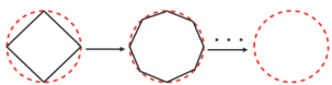 通过介绍刘徽“割圆术”的基本思想,使学生了解到选取的正多边形变数越多分割的越细,多边形的面积就越接近圆的面积。让学生初步掌握分割的近似逼近的思想。“割圆术”的割圆术展现在图2 中。