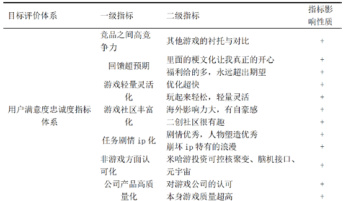 目前,对二次元游戏的客户忠诚度尚未形成统一标准,基于现有的调查和文献[7],将竞品之间高竞争力、期待超预期、游戏轻量灵活化、游戏社区丰富化、任务剧情 ip化、非游戏方面认可化、公司产品高质量化这七个因素定为一级指标,并根据数据的可获得性原则分别选取 12 项二级指标,最后形成符合研究需求的综合指标体系,具体如表3 所示。