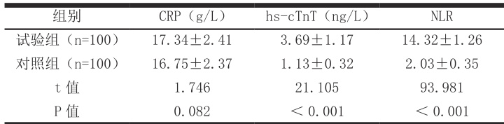 2.1 比较两组 CRP、hs-cTnT、NLR 水平