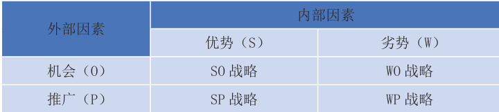 将收集到的信息按照S、W、O、P 四个类别进行整理、归纳和分类,填入一个四象限表格中。