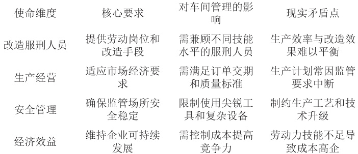 表 2 监狱企业服装车间的双重使命与内在矛盾
