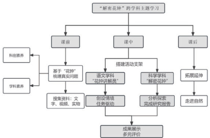 在梳理两大学科的教学内容时,我们不难发现跨学科实践活动的连接点,以此为连接,生发了“解密花钟”跨学科实践活动的学习主题。以“解密花钟”作为跨学科学习的主题,进行语文和科学学科跨学科主题学习,引领学生探究花钟形成的原因和花钟原理,完成语文学科的相关学业要求与目标并达成学生科创素养的培养目标。