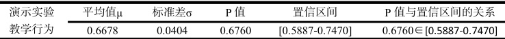 根据Porter 一致性系数计算公式,研究得出初中物理演示实验教学行为与课程标准的一致性系数P 值为0.6760。根据样本均值与标准差确定了 95