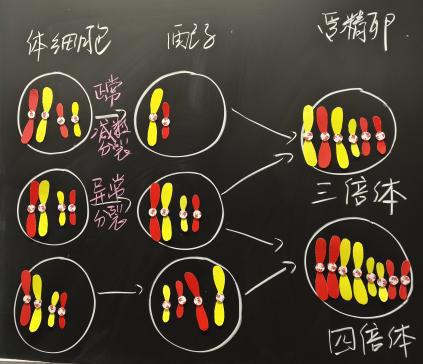 继续利用染色体模型模拟二倍体,三倍体和四倍体的形成过程