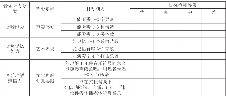 《1~2 低年级音乐听力培养的学段目标检测表》