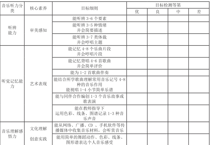 《5~6 中、高年级音乐听力培养的学段目标检测表》