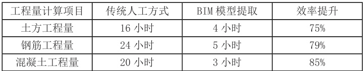表 1 BIM 技术工程量提取效率对比