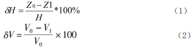式中:δH—水头降排空比率;Z0—正常水位,m ;Z1—降水位,m ;H—大 坝水头,m ;δV—储存容量排空比率;V0—对应于正常水位的储存容量,m3 ; V1—对应于排空水位的储存容量,m3。